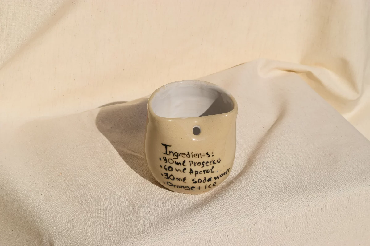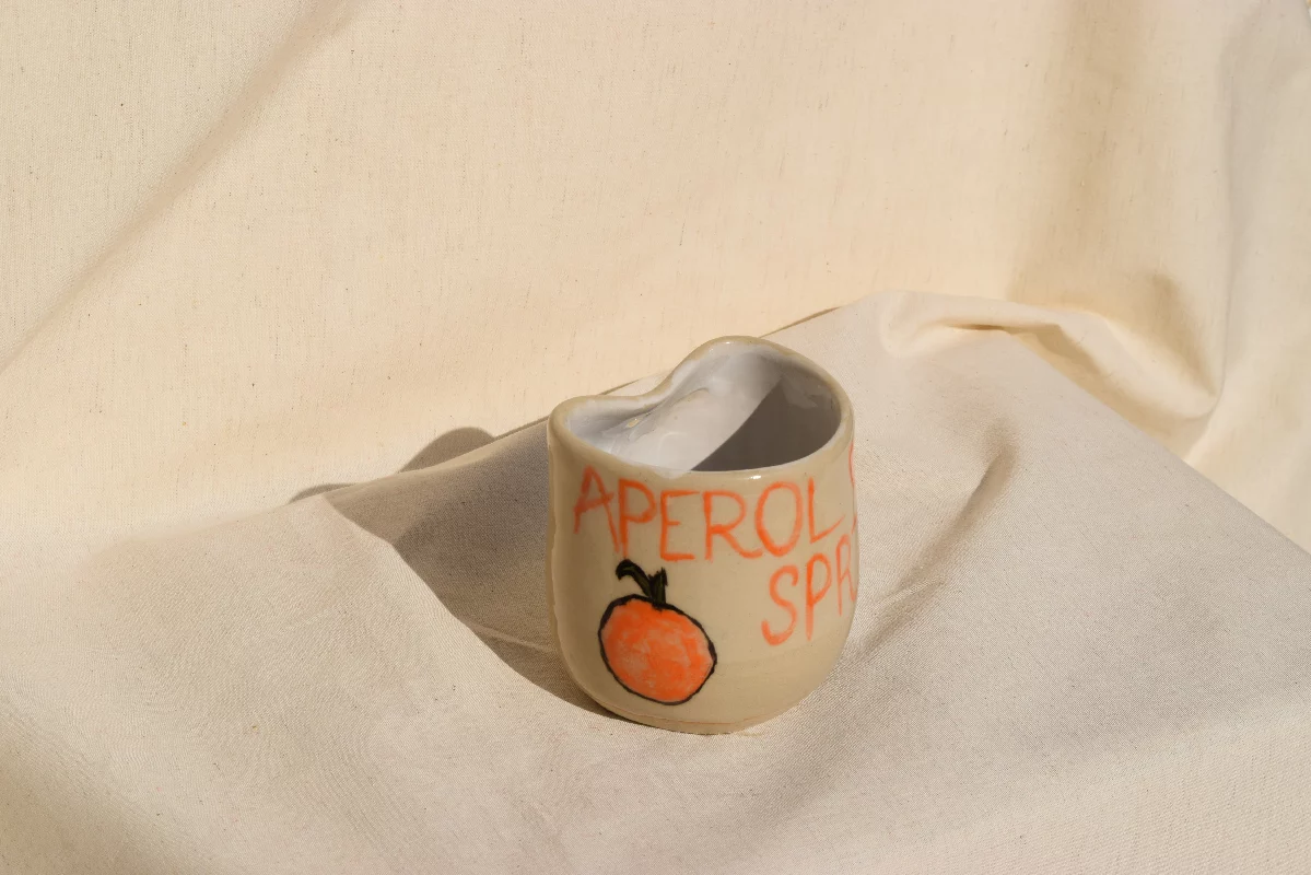 Exterior has a hand-painted ‘aperol spritz’ theme and a hole for the straw.
